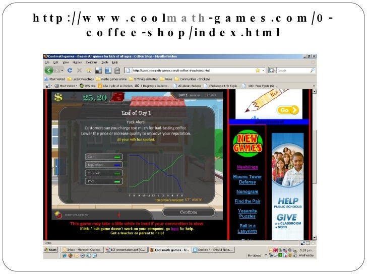 Find great deals on ebay for cool math game. You have to plan your budget, your recipe and how much to charge. Players choose two numbers and the operand that makes the result in the blue squares. Have you found an undiscovered gem? A great business game where you run your own coffee shop.
